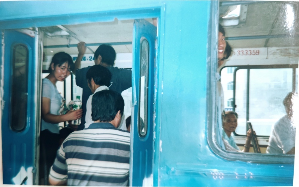 ▲00年代,售票員工作場景。售票員站在車門口,微笑迎著上車乘客。