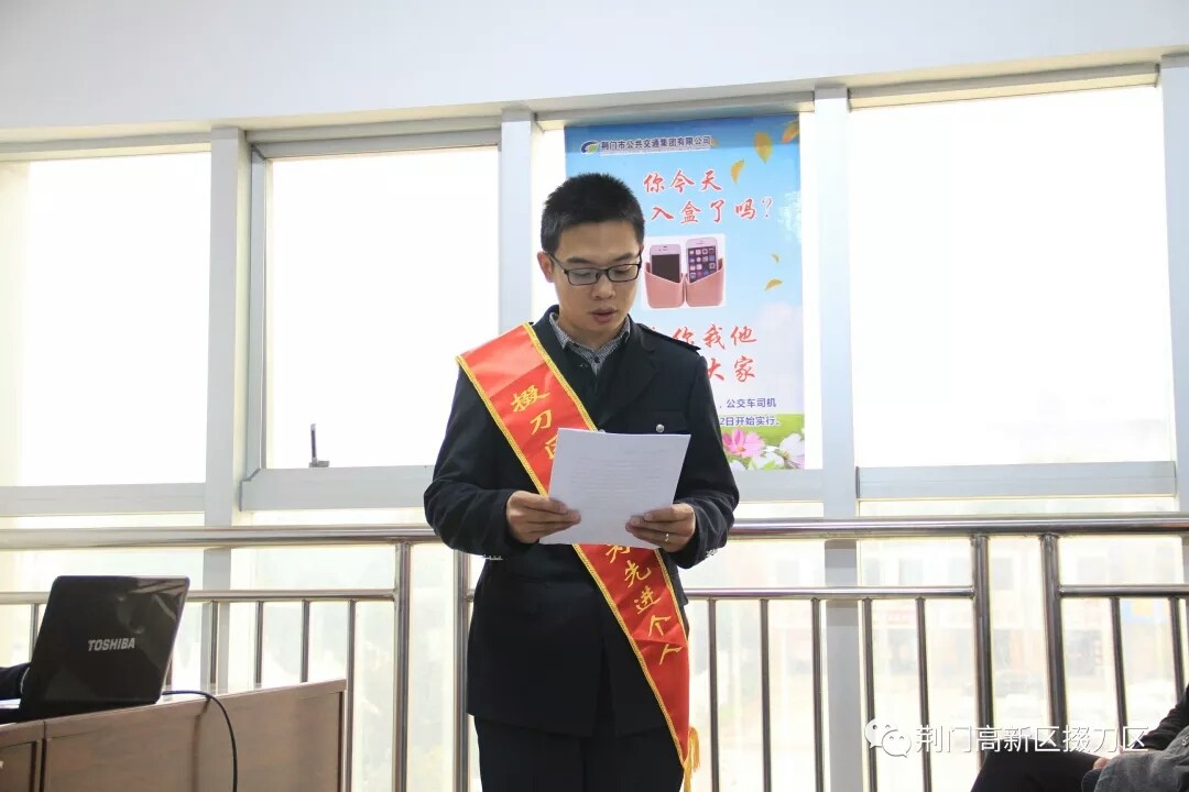 在當(dāng)天的表彰大會(huì)上,荊門(mén)市高新區(qū)·掇刀區(qū)政法委副書(shū)記朱曉紅、市公交集團(tuán)有限公司副總經(jīng)理張忠林還分別結(jié)合“10·28重慶萬(wàn)州公交車(chē)墜江事故”要求廣大公交駕駛員遵守職業(yè)道德,如何理性對(duì)待無(wú)理取鬧的乘客,遠(yuǎn)離負(fù)能量的人。表?yè)P(yáng)聶聰聰在他人的財(cái)產(chǎn)找到嚴(yán)重危害時(shí),義不容辭的出手相救,有效避免了他人重大財(cái)產(chǎn)損失,并號(hào)召要以身邊的時(shí)代楷模聶聰聰為榜樣,學(xué)習(xí)聶聰聰奮不顧身、見(jiàn)義勇為的高尚品質(zhì),要大力宣傳宣傳見(jiàn)義勇為先進(jìn),以先進(jìn)的事跡感染人、吸引人,以崇高的精神激勵(lì)人、鼓舞人,用實(shí)際行動(dòng)傳遞社會(huì)正能量,為平安掇刀創(chuàng)建作出新的貢獻(xiàn)。