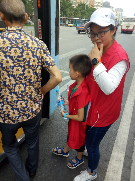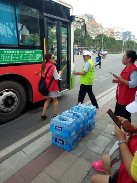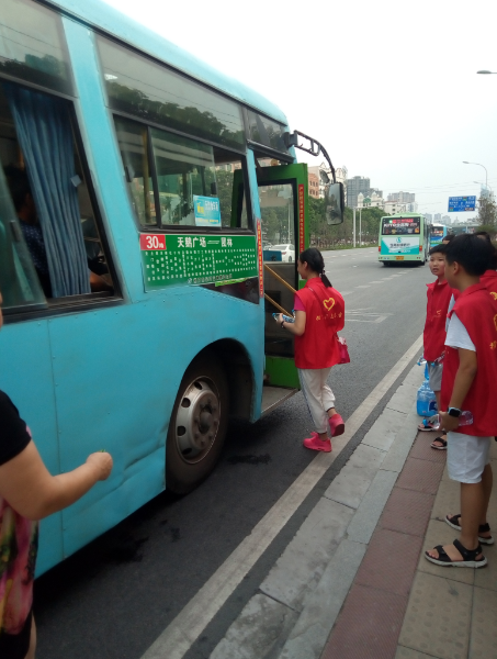 15時許,志愿者們已經(jīng)布置好了送水點(diǎn),將箱礦泉水?dāng)[在了站臺旁邊。每有一輛公交車進(jìn)站停靠,志愿者們都會給駕駛員們遞上兩瓶礦泉水,還有一些放暑假的小朋友們,也熱情的加入到此次活動,充當(dāng)著志愿主力軍,用他們的行動清涼了公交駕駛員的心,傳播著社會正能量。