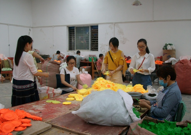 當(dāng)日9時,在荊門市圓夢愛心幫扶會會議室中舉行了升旗儀式,黨員們重溫入黨誓詞,認(rèn)真學(xué)習(xí)了習(xí)近平總書記視察湖北重要講話精神。隨后孟麗華介紹了市圓夢殘疾人庇護(hù)工場的相關(guān)情況,2014年,在孟麗華的牽頭下,籌建了一個助殘扶弱的公益組織,取名為荊門市圓夢愛心幫扶會,創(chuàng)辦了一個專門為殘疾人服務(wù)的庇護(hù)工場。為了更深入的了解市圓夢殘疾人庇護(hù)工場,黨員們在解說員的陪同下,參觀殘疾人員工的工作環(huán)境,還一起與員工們編織手工花朵,為工場打掃衛(wèi)生,清除雜草,給這些殘疾人員工一個更好的工作環(huán)境。