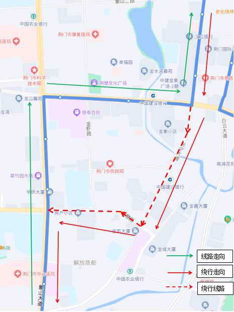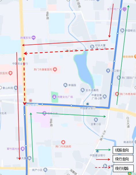 調(diào)整后新增??空军c(diǎn):瀏河橋(西側(cè))、金寧小區(qū)(西側(cè))、荊門電視臺(西側(cè))、鳳臺社區(qū)(北側(cè))、?;壑袑W(xué)(北側(cè))。